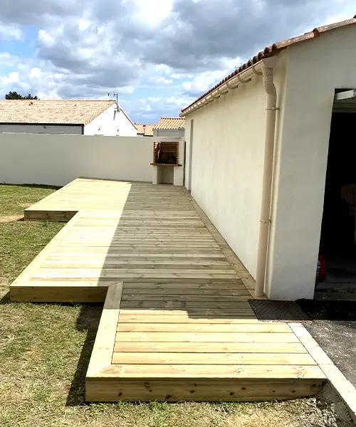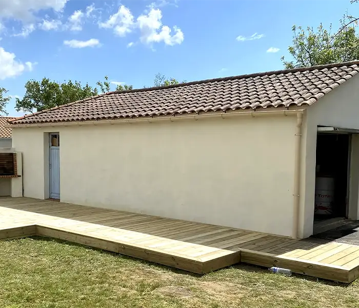 Transformez vos extérieurs avec nos solutions sur mesure : bardage bois, terrasses en bois composite ou massif, pergolas en bois, et carports adaptés à vos besoins ainsi que la pose de clôtures. En savoir plus sur notre entreprise d’aménagement extérieur aux Sables d’Olonne.
